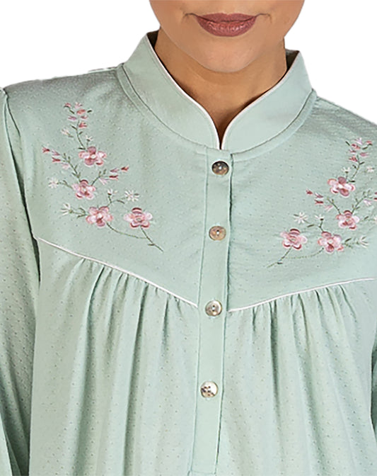 Sale 25% OffSizes: 1012 14 1618 20 222426SaleBOUQUET EMBROIDERY MANDARIN NIGHTIE SAGE - SK238E