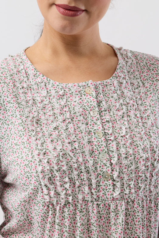 Vendor:SchrankRegular price $79.95 AUDRegular priceUnit price / per$79.95 AUDSale price $79.95 AUDSizes: 10 12 14 16 18 20 2224BOUQUET RUFFLE NIGHTIE SAGE - SK242B6