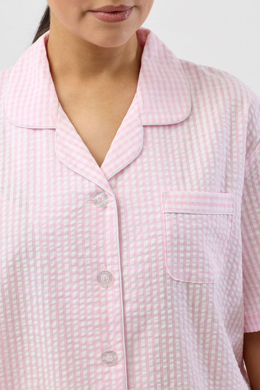 SEERSUCKER CHECK NIGHTIE PINK - SK707C5